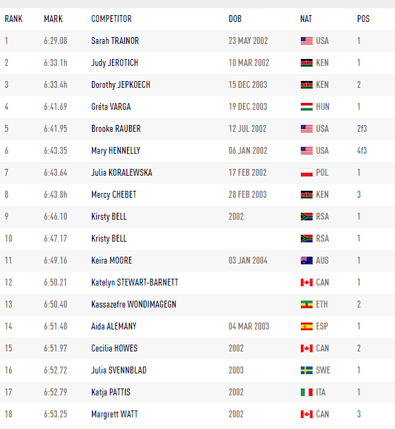 Congratulations to Ceci Howes for being named to the Canadian National U18 team heading to Mexico to compete this July against the NACAC countries. Also in an exciting turn of events, both Ceci and Margrett Watt have found themselves among the top 20 performances in the world on the IAAF U18 steeplechase list! Not a bad day at the office! Congratulations on all counts!