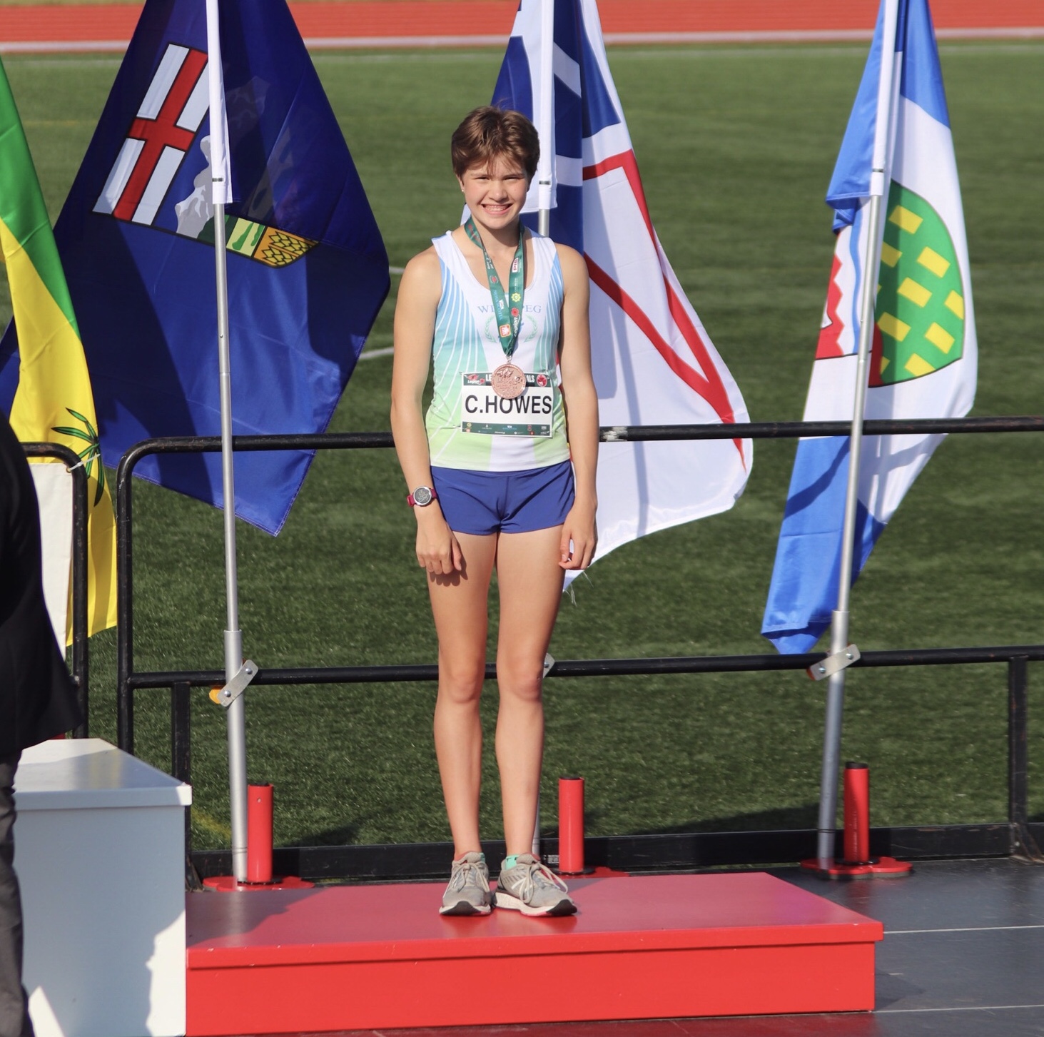 Ceci Howes won the silver medal in the U20 Women’s steeplechase in a personal best, provincial record breaking time of 10:47.19.